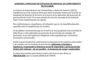 ⚠️COMUNICADO IMPORTANTE⚠️ CECA repudia la agresión que sufriera un empleado de nuestro sector en cumplimiento de sus tareas. La única herramienta para luchar contra este virus es, por ahora, la PREVENCIÓN, que es responsabilidad de TODOS. #Prevención #cuidateCuidamecuidanos #alvirusloenfrentamosentretodos #Noscuidamosentretodos